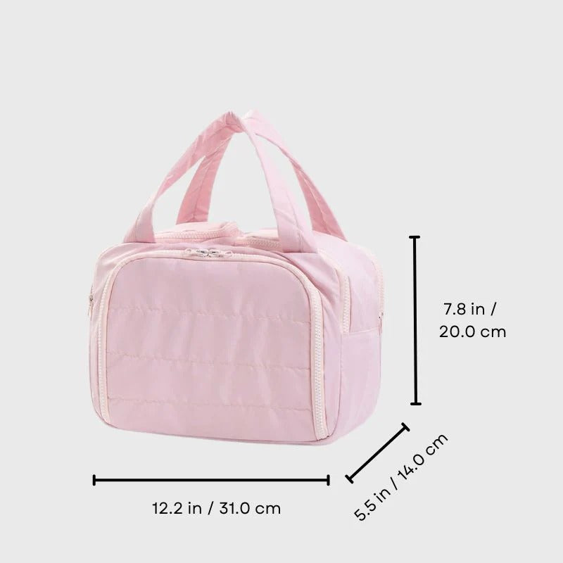The bag measures 31 cm x 20 cm x 14 cm — compact enough for travel, yet spacious for all your beauty essentials.