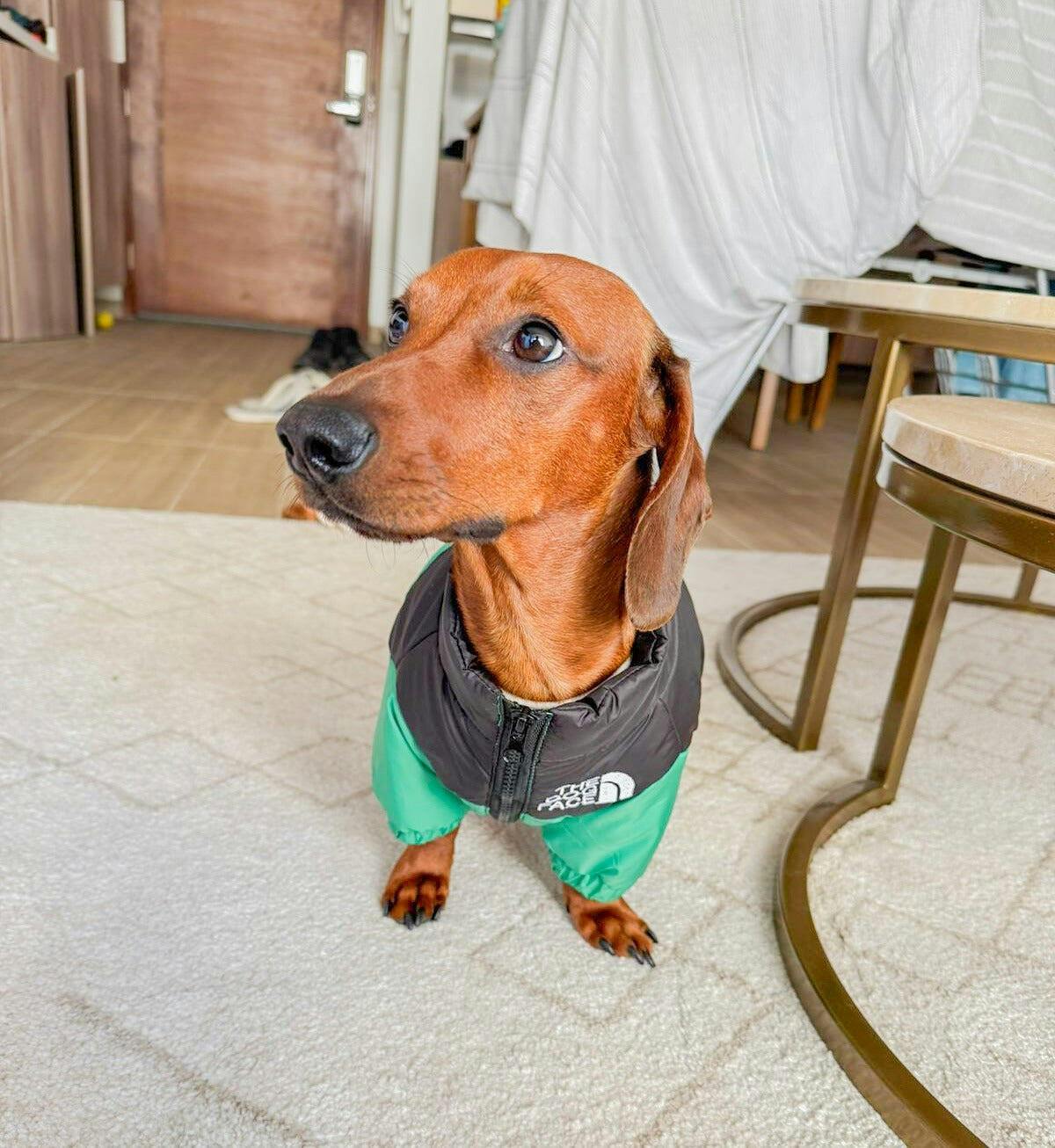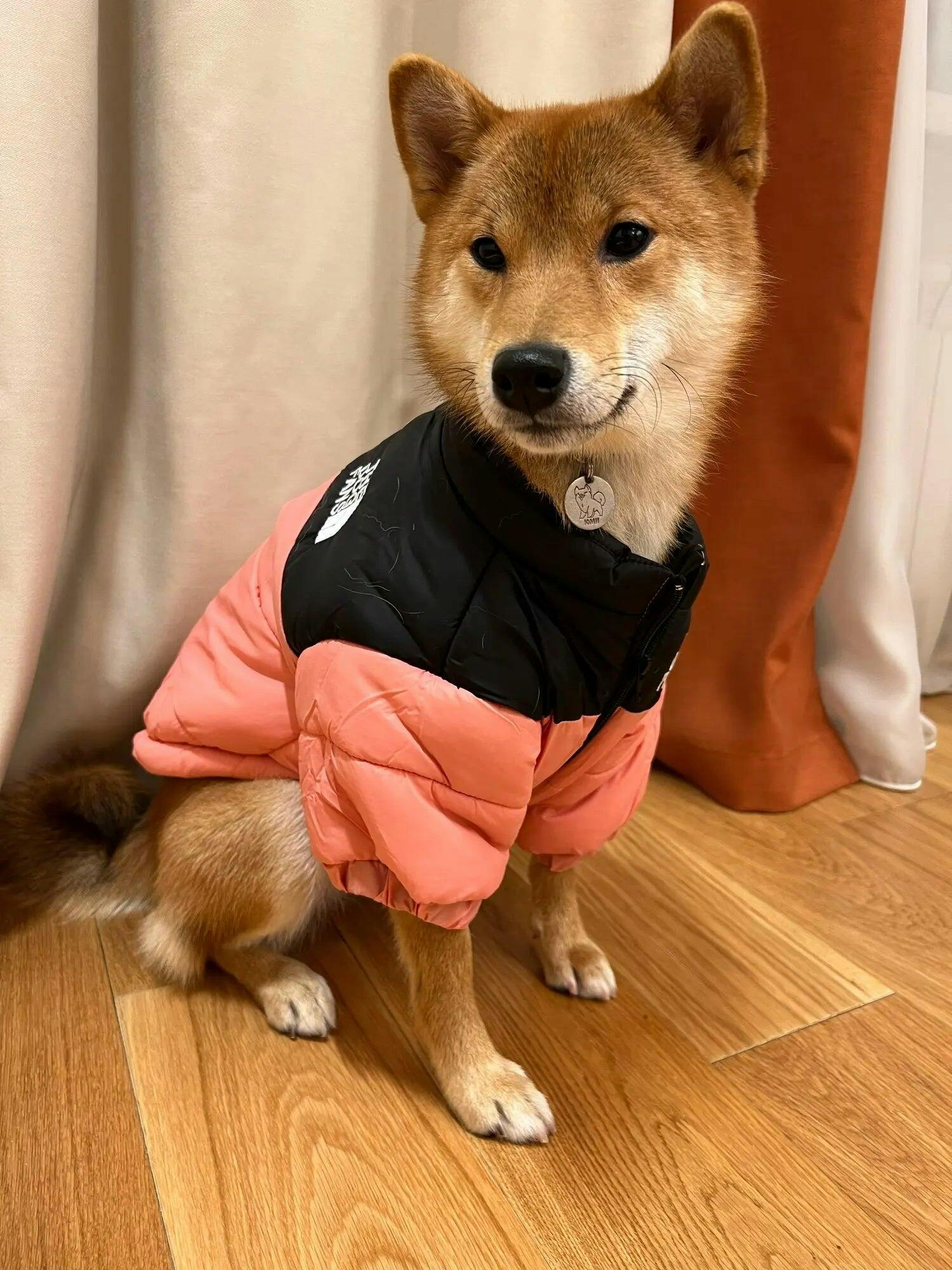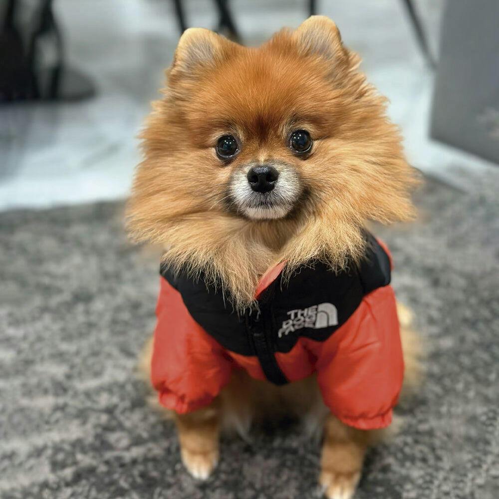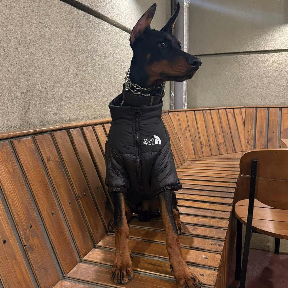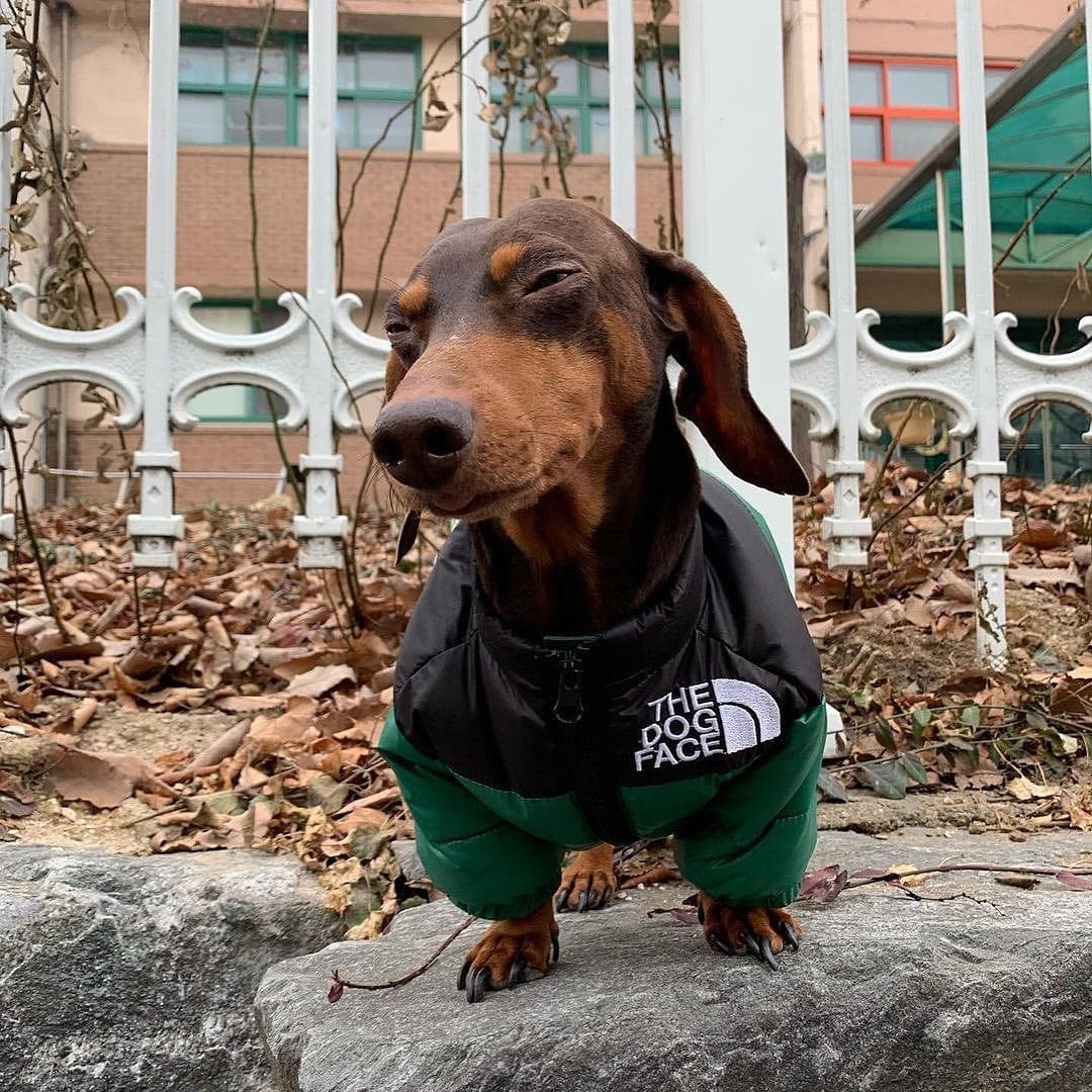 The Dog Face Puffer Jacket is made from high-quality, weatherproof materials designed to keep your dog warm and comfortable during cold weather.