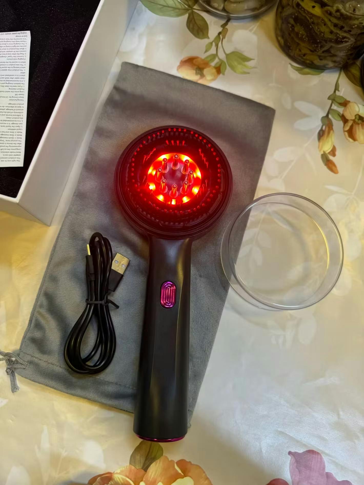 TheraBrush™ stimulates hair growth by combining red light therapy, gentle scalp massage, and nutrient infusion to awaken dormant follicles and restore scalp health.
